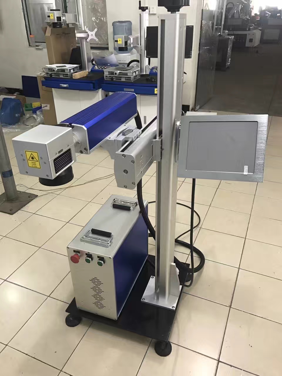 飛行激光打標(biāo)機是針對客戶流水線定做的激光打標(biāo)機,根據(jù)客戶流水線速度,打標(biāo)要求定做。主要用于在各類產(chǎn)品表面或外包裝物表面進行在線式噴碼標(biāo)刻,與傳統(tǒng)的只能對靜止的物體進行打標(biāo)的激光打標(biāo)機不同的是:在噴碼刻標(biāo)過程中,產(chǎn)品在生產(chǎn)線上不停的流動,從而極大地提高了生產(chǎn)的效率,使激光機適應(yīng)了工業(yè)生產(chǎn)的要求,基本覆蓋了噴墨機的全部應(yīng)用范圍,此激光打標(biāo)機已不在是簡單的標(biāo)注產(chǎn)品日期和批號,由于其具有視覺及觸覺的獨特效果和永不可擦涂的特點,因此還具有了較強的防偽、防竄貨特性