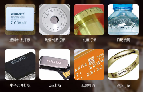 金屬,皮革,線纜,管材,塑料包裝,紙盒,橡膠,各種飲料酒水瓶體。(根據(jù)具體情況安裝不同激光器,詳情請關(guān)注不同激光打標(biāo)機應(yīng)用領(lǐng)域)